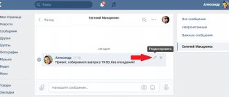 The second method allows us to correct the message sent to the interlocutor in VK by editing it. If using the first method we completely get rid of the problematic message, in the case of the second method we simply edit it as we need. In this case, the “24 hours” rule, which I already mentioned above, also applies - if a day has passed since the problematic message was sent, then you will not be able to edit it.