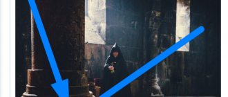 - На главной странице под миниатюрой фотографии находится небольшая стрелка. Если кликнуть на нее, появится ряд разделов, среди которых будут «Настройки».